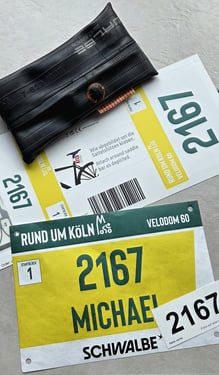 Neben meiner personalisierten Startnummer, die Nummer von vor zwei Jahren war leider nicht frei, habe ich auf der Expo den Schlauch meines hinteren Laufrades bei Schwalbe "ausgetauscht" (Butyl gegen Aerothan) und mich dort exklusiv nach dem neuen Ventilsystem "Clik Valve" erkundigt.