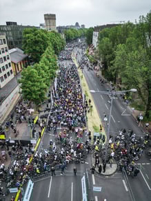 Nach dem Start ging es sehr schnell los 💨💨💨. Ich befand mich mitten im B-Block, fand aber schnell den Anschluss an eine der vorderen Gruppen. Nach der Kalker Durchfahrt kam es unmittelbar nach der langen Unterführung auf der Olpener Str in Köln-Höhenberg zu einen Massensturz. Ich konnte gerade noch bremsen und ausweichen. Dadurch fuhr der vordere Teil der Gruppe ungebremst weiter, ich musste mit anderen um den Unfall herum und aus dem Stand neu starten. So war der Anschluss früh verloren.