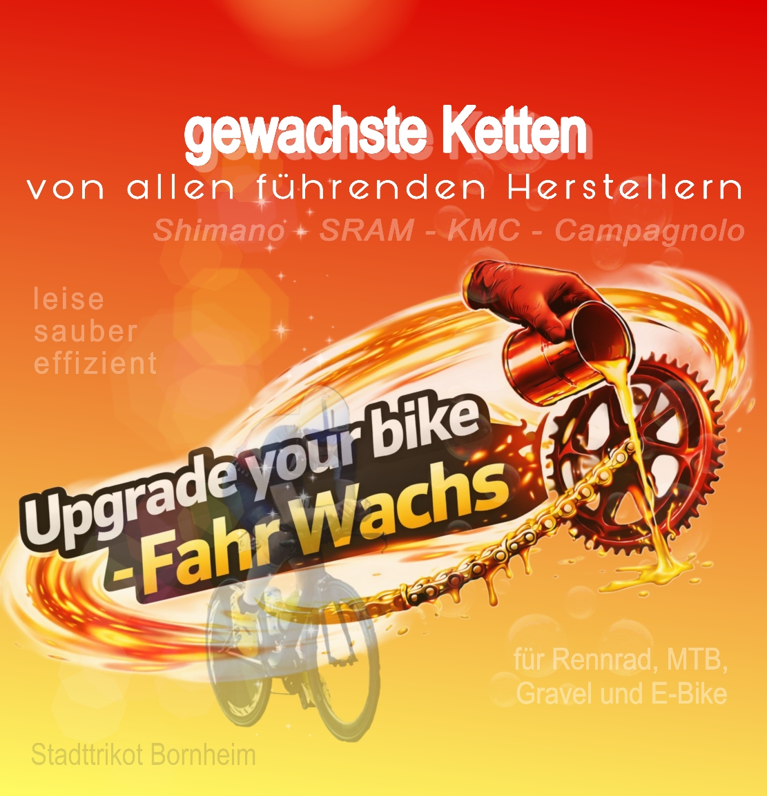 In den vergangenen Monaten habe ich mich mit einem "Trend" im Radsport, nämlich mit dem Thema "Heißwachs für die Kette", beschäftigt 🧐. Ich wollte herausfinden, ob es sich hierbei tatsächlich nur um einen Trend handelt oder um ein Upgrade im Radsport. Ich selbst bin immer an Neuerungen oder neuen Techniken interessiert. Vor allem dann, wenn ich für mich einen Nutzen erkenne.