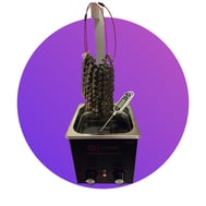 Das Thermometer wird benötigt, um den optimalen Zeitpunkt der Entnahme der Ketten aus dem Bad zu erwischen. Dieser liegt bei ungefähr 60 Grad Celsius. Das ist die Temperatur, bei der das Wachs eine dünne Schicht auf der Oberfläche bildet. Das ist laut Beschreibung der beste Zeitpunkt, die Kette aus dem Bad zu holen und zum Trocknen aufzuhängen. Einen anderen Zeitpunkt habe ich noch nicht ausgetestet.