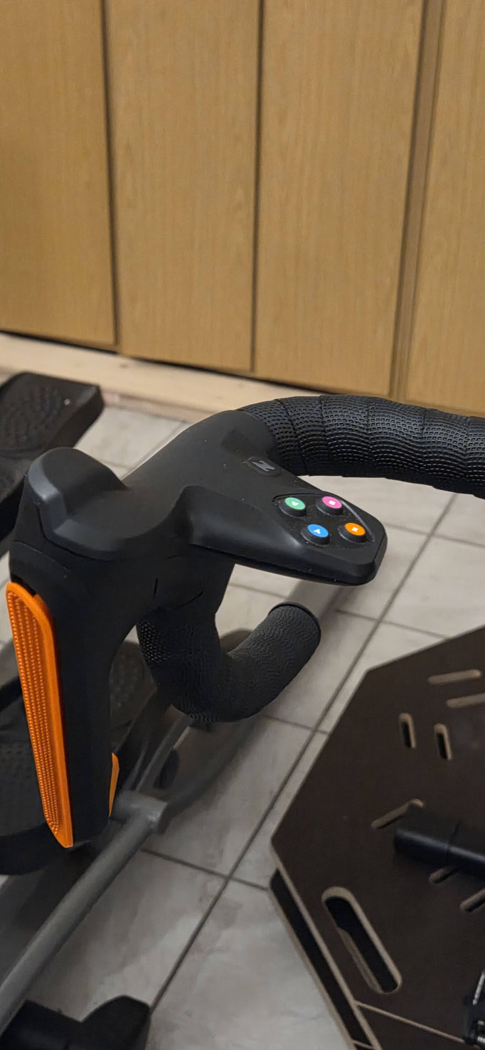 Das Lenken mit den Handgriffen muss geübt werden, es ist nicht intuitiv. Eine andere Lösung, wie zB von Elite angeboten, fände ich deutlich intuitiver. In der Zwift Racing League ist das Lenken und Bremsen zum Glück ausgeschaltet. Ich wüßte auch nicht, ob ich in einem Rennen die Kapazitäten dafür hätte, Schaltflächen oder Hebel zu betätigen.