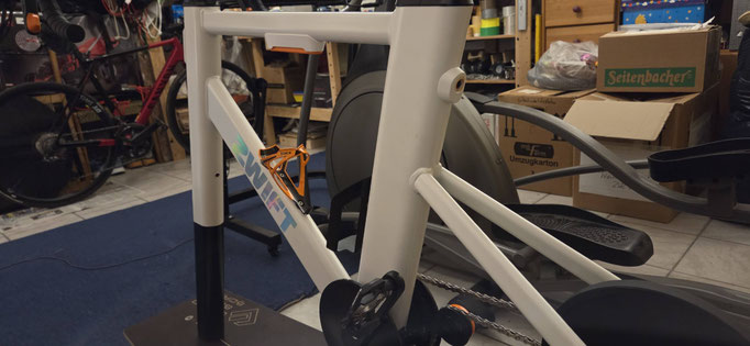 Der von Zwift entwickelte Smartrahmen hat mir sofort sehr gefallen. Den einzigen Nachteil, den dieser Rahmen bietet: er kann mit seiner vollständigen Funktionalität ausschließlich mit der Trainingsplattform Zwift benutzt werden. Die Nutzung des Zwift:Cog auf anderen Plattformen funktioniert nur bedingt und auch nur mit zusätzlicher Software, die nicht "freigegeben" wurde. Aber wie Ihr an meiner Begeisterung für Zwift erkannt habt, ist dies für mich kein wirklicher Nachteil.